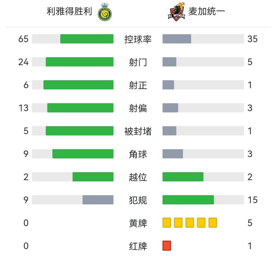 最终利雅得胜利0-1不敌麦加统一无缘决赛,利雅得胜利各项赛事三场不胜且零进球。