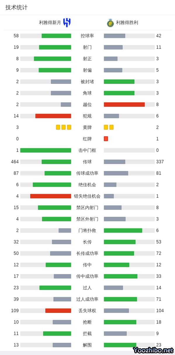 最终,利雅得新月2-1利雅得胜利。