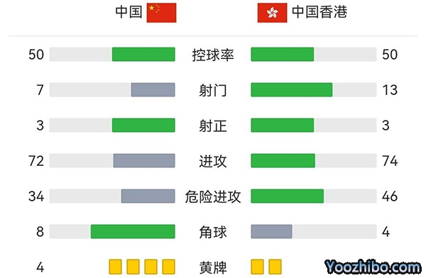 全场比赛结束,中国男足1-0击败中国香港。