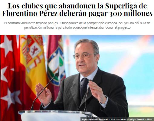 Vozpópuli表示:目前虽然各家俱乐部都已经发表声明退出,但是实际上他们在技术上还在,因为如果真的退出是需要支付赔偿的,这个条款每家俱乐部都有份,而且都在周日之前签署的协议中写明。