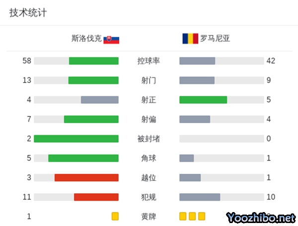 第24分钟,库茨卡右路45度传中,杜达后点头球攻门得手,斯洛伐克1-0罗马尼亚。
