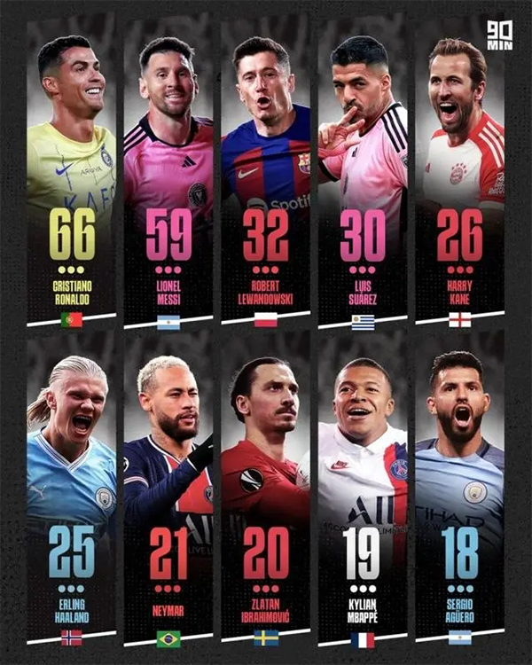 直播车讯90min统计本世纪球员戴帽的次数,C罗66次戴帽居首,梅西59次第二。