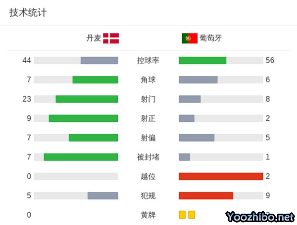葡萄牙首发:1-科斯塔、19-门德斯、3-迪亚斯、13-维加、5-达洛特、15-若奥-内维斯、8-B费、23-维蒂尼亚、9-内托、7-C罗、17-莱奥