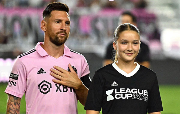 此役阿根廷主帅斯卡洛尼前来观战,贝克汉姆和贝嫂依旧在现场加油助威,他们的女儿小七哈珀成为梅西的球童,现场座无虚席。