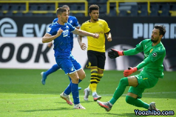 半场结束,多特暂时在主场0-2落后霍芬海姆。
