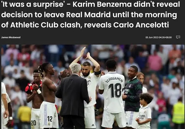 来源:直播车06-05 15:51直播车讯06月05日安切洛蒂很难过看到本泽马离开,尤其是在比赛当天早上才得知他的决定。安切洛迪表示不能对本泽马的决定感到高兴,感谢他所做的一切。