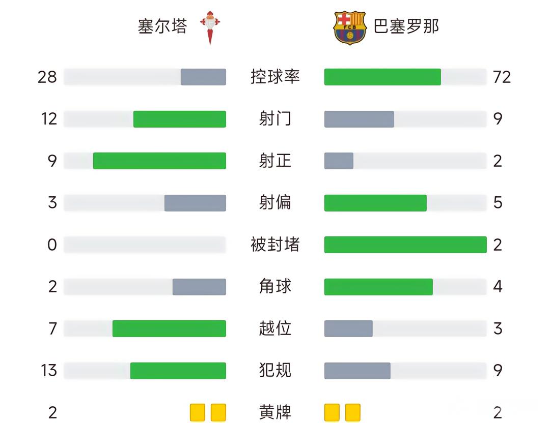 第42分钟,塞尔塔打破僵局!塞费罗维奇弧顶斜传维加禁区右路推射远角破门,塞尔塔1-0巴萨。