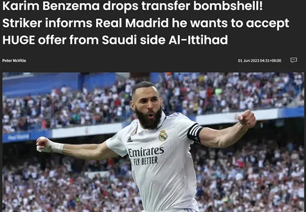 本泽马收到了一份为期两年的合同,据报道他将获得4亿欧元的收入。他还将在沙特阿拉伯申办2030年世界杯期间担任大使。