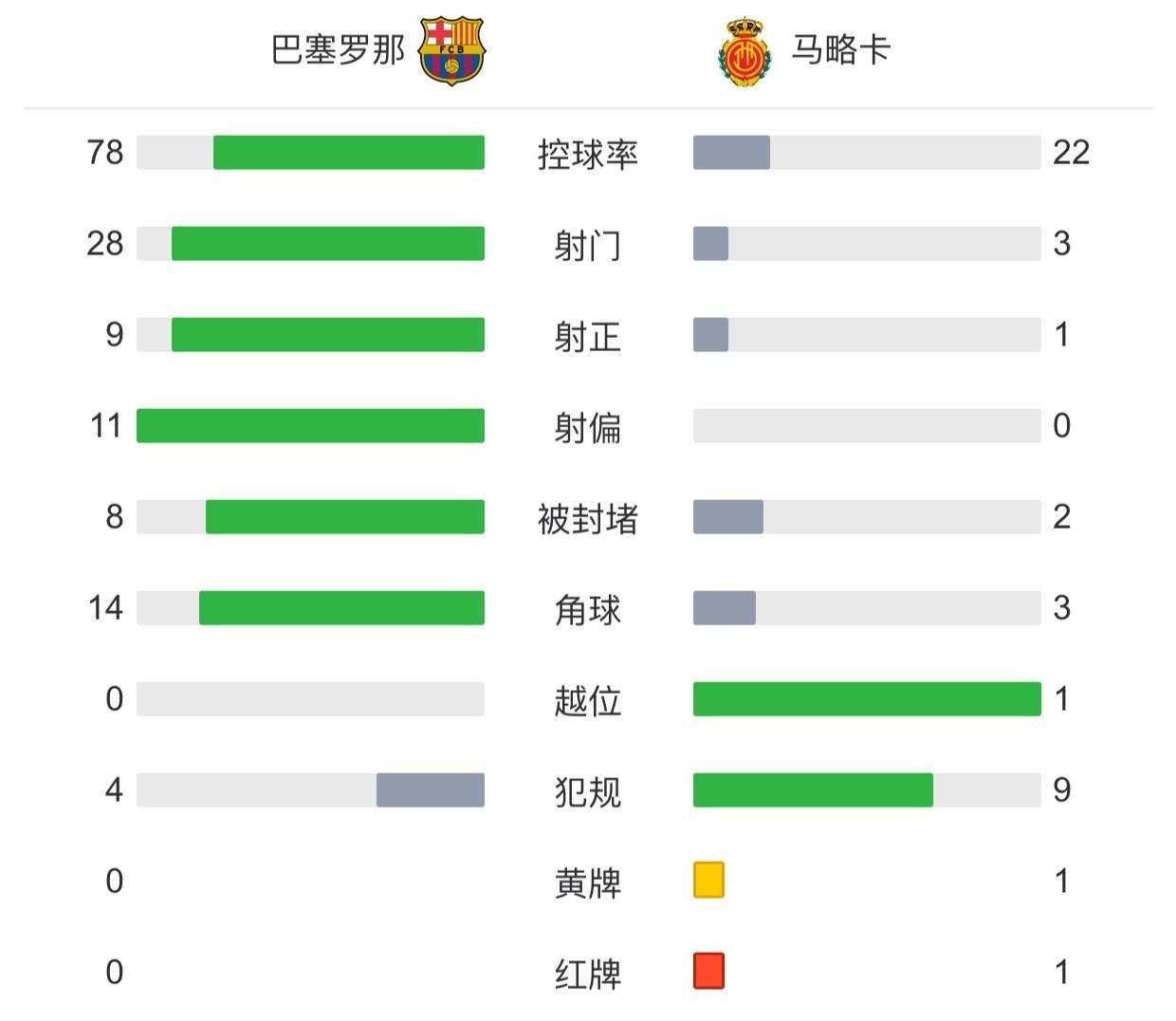 最终巴萨3-0十人马洛卡。