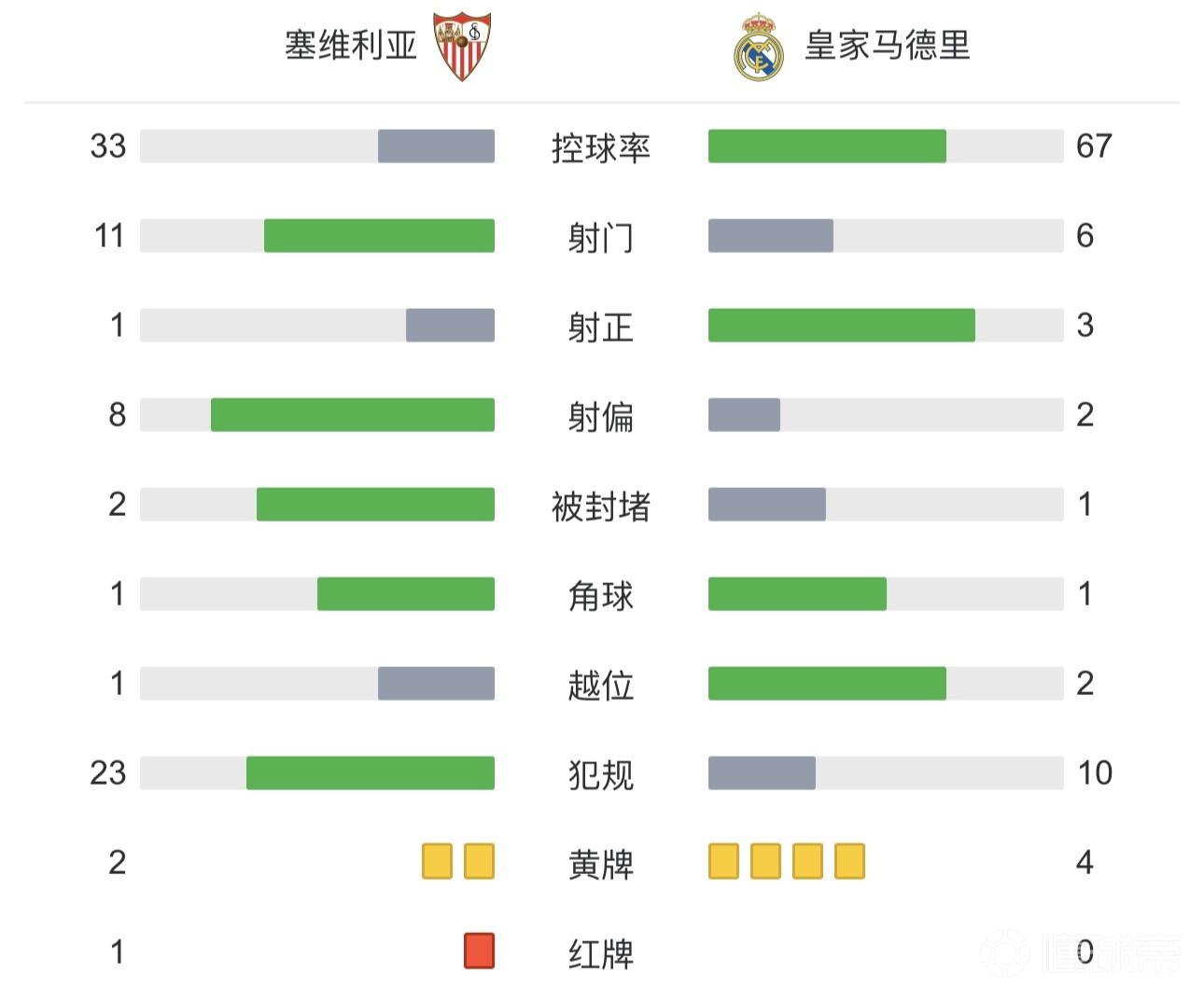 第2分钟,希尔禁区左侧打门被米利唐封堵,随后拉法-米尔顺势再抽射得手,塞维利亚1-0皇马!