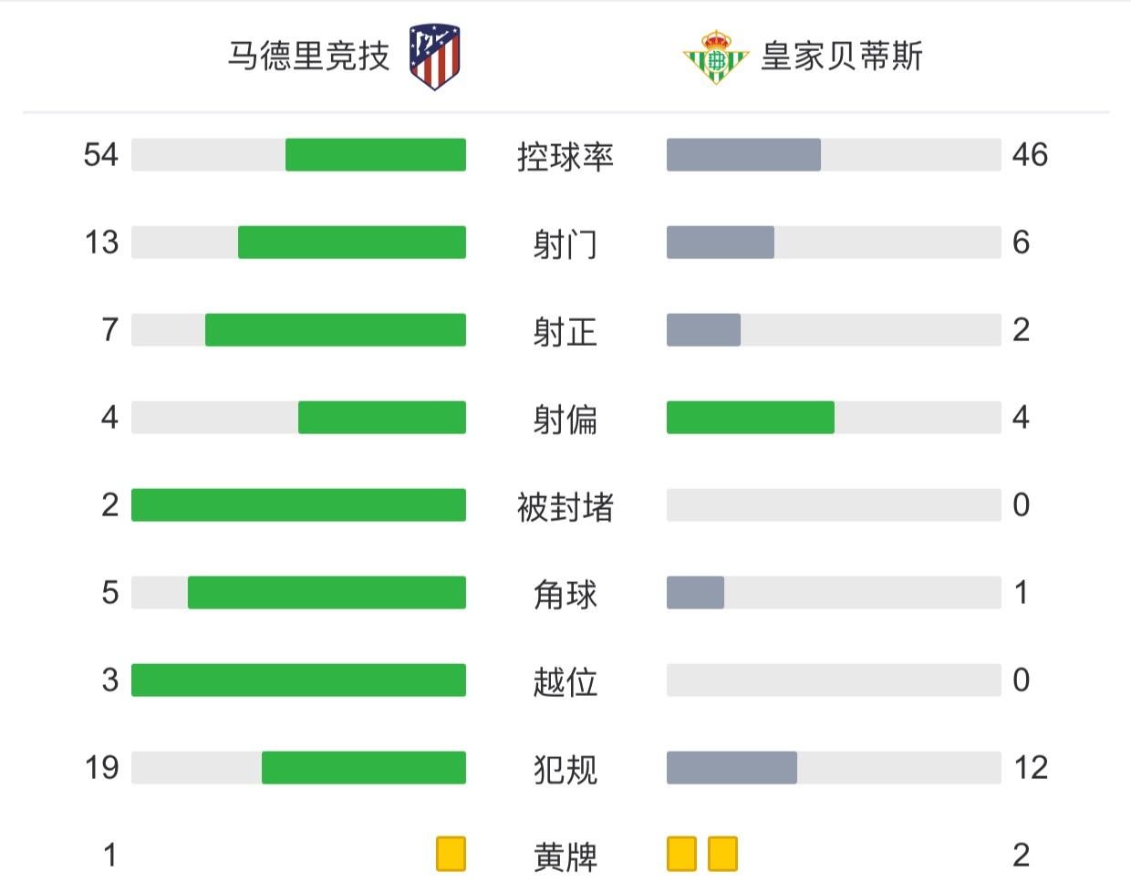 最终全场比赛结束,马竞主场1-0贝蒂斯。