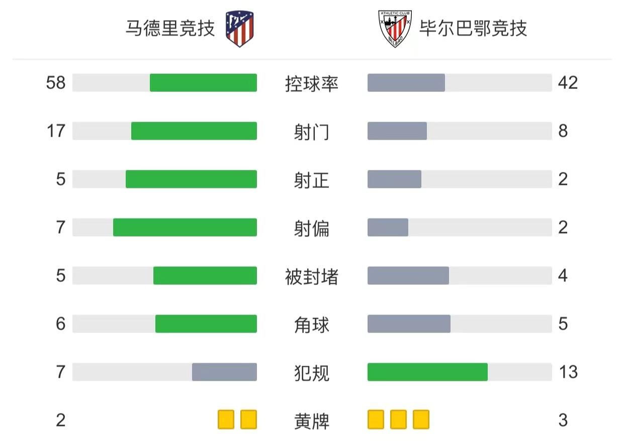全场比赛结束,马德里竞技1-0毕尔巴鄂。