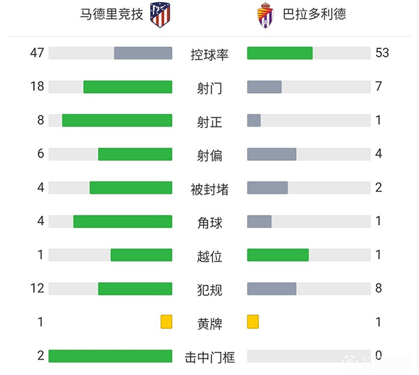 全场比赛结束,最终马竞3-0大胜巴拉多利德。