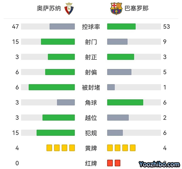 全场比赛结束,最终十人巴萨2-1逆转奥萨苏纳。