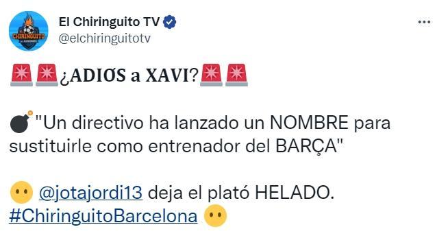 直播车10月27日消息,巴塞罗那欧冠出局后,西班牙六台记者称巴萨高层已经找好了主帅哈维的代替者。