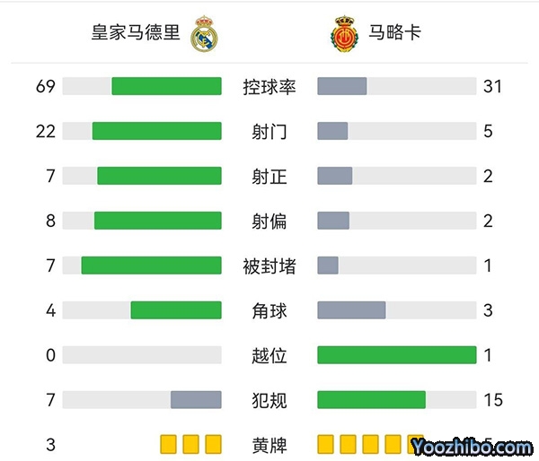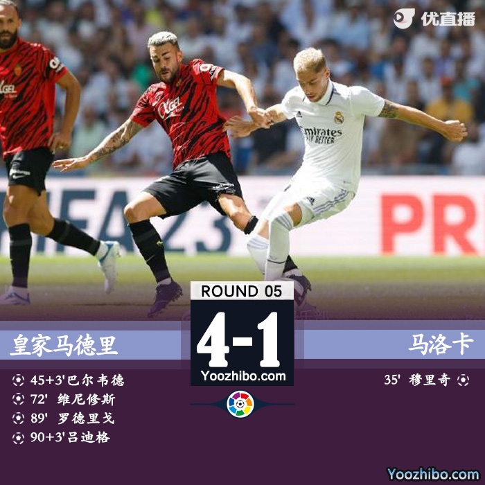 全场比赛结束,皇马4-1逆转马洛卡,联赛5连胜继续领跑。