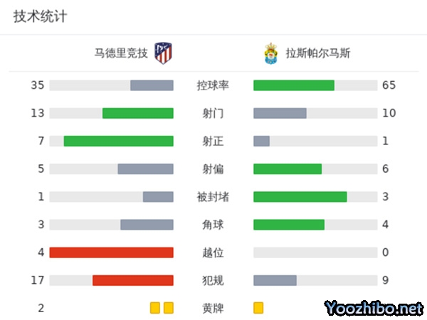 全场比赛结束,最终马竞5-0拉斯帕尔马斯。