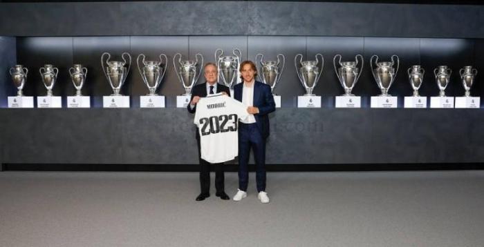 卢卡-莫德里奇签下续约合同,由主席弗洛伦蒂诺-佩雷斯陪同。克罗地亚人与我们俱乐部的续约到2023年6月30日为止。签约后,他收到了一件印有他的名字和2023号码的球衣。