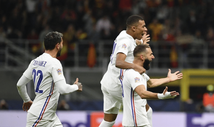 来源:直播车06-03 21:26直播车06月03日讯 世界冠军法国队已经不缺巨星,即便在顶级球星本泽马缺席的情况下,依然强势拿到了2018世界杯的冠军奖杯。如今2022年,法国队虽然保持超级豪华的配置,但是现在这支法国队不能没有本泽马,一方面是格列兹曼、吉鲁等人状态下滑,一方面是本泽马达到了世界第一中锋的水准。