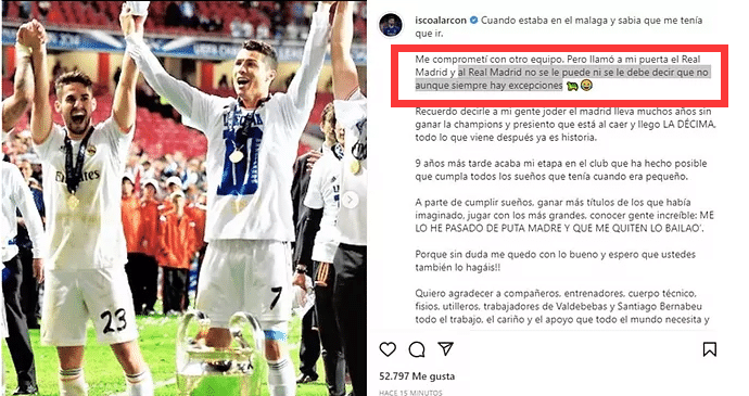 伊斯科将在今夏结束9年的皇马生涯,他在INS上发文深情告别银河战舰,而且揶揄了姆巴佩。