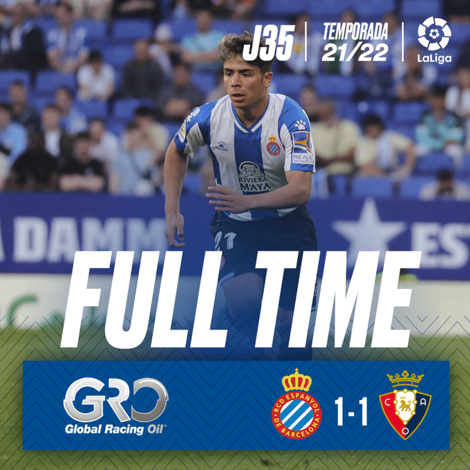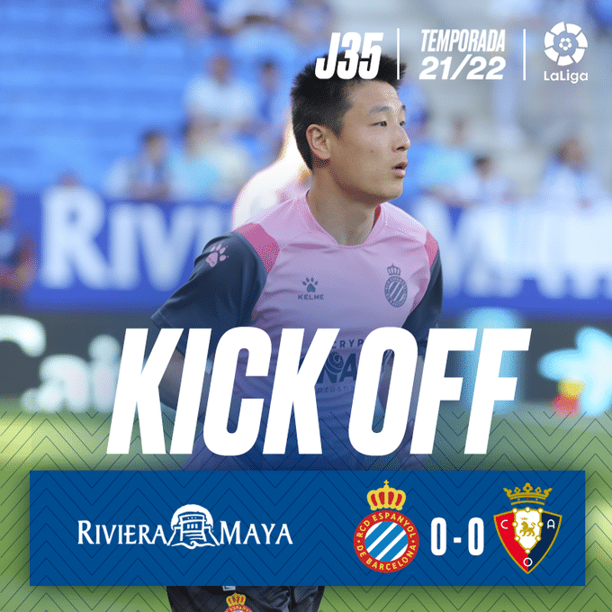 直播车05月09日讯北京时间今天凌晨,西班牙人在西甲第35轮1-1战平奥萨苏纳,武磊首发出战但半场就被换下,以下为他上半场的数据。