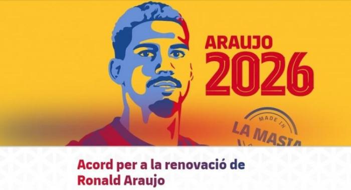 直播车04月27日讯 消息,巴塞罗那官方宣布和乌拉圭后卫罗纳德-阿劳霍续约至2026年6月30日。
