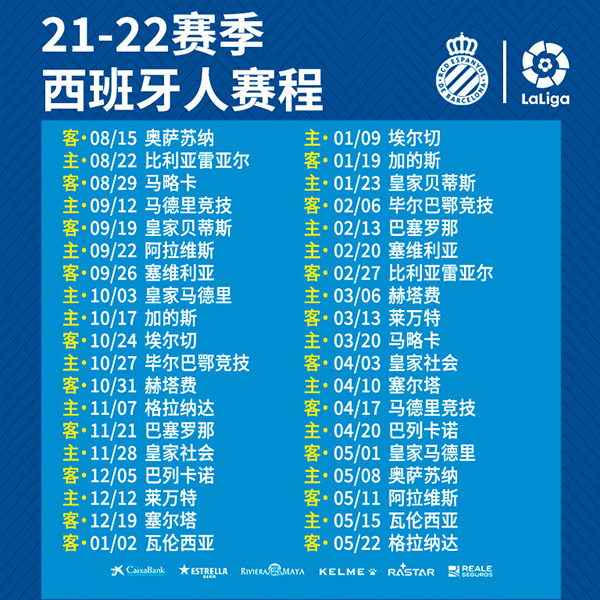 来源:直播车04-10 22:34直播车9月14日讯2021-2022赛季西甲联赛将在8月中旬正式开赛,那么新赛季西班牙人的赛程是如何安排的呢,相信这是许多武磊球迷最关心的,接下来就随小编一起来了解一下吧。