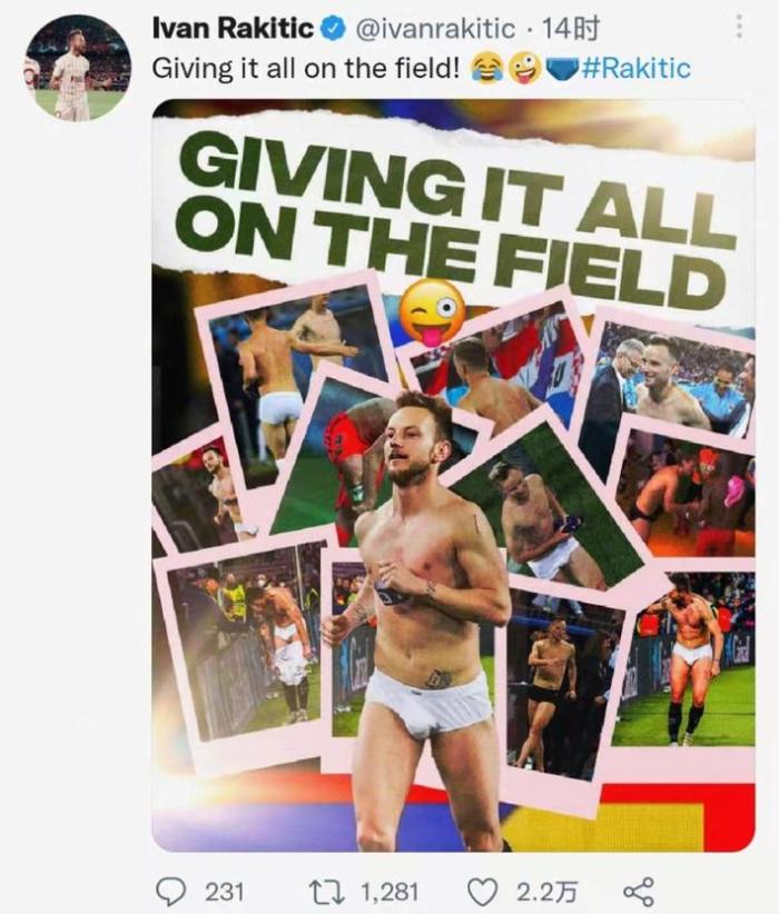 拉基蒂奇社媒晒内裤照合集:比赛中全力以赴