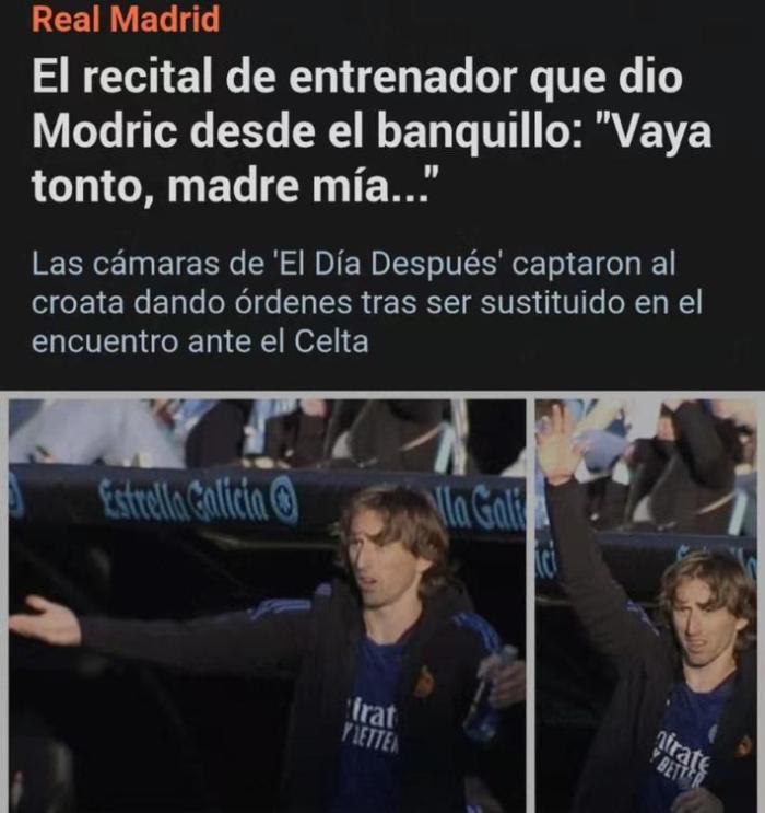 来源:直播车04-05 20:23直播车04月05日讯 在此前皇马对阵塞尔塔的比赛中,由于安切洛蒂感染新冠无法现场指挥比赛。有趣的是,摄像机捕捉到莫德里奇在被换下后,充当起教练的角色,发号施令。