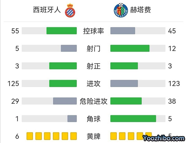西班牙人2-0赫塔费 卡夫雷拉破门卡巴科乌龙武磊89分钟登场