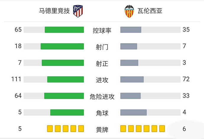 最终,全场比赛结束,马竞连追三球3-2绝杀瓦伦西亚。