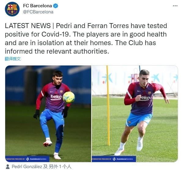 巴萨官方:佩德里、费兰-托雷斯新冠检测呈阳性