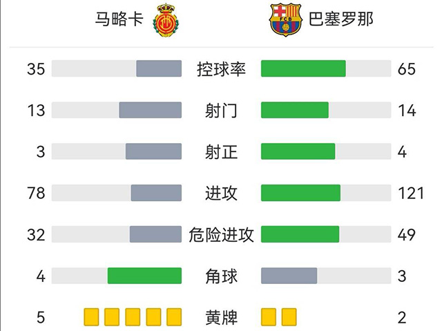 全场比赛结束,巴塞罗那1-0马洛卡。