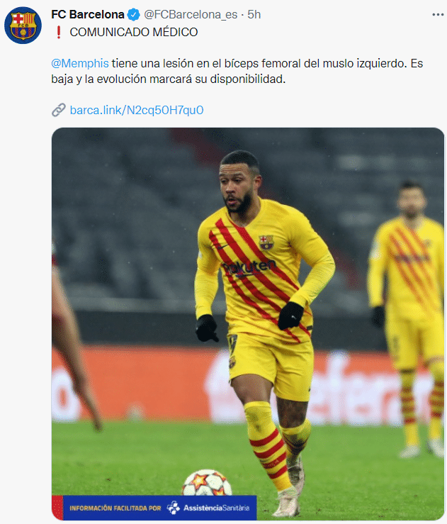 雪上加霜!德佩伤缺一个月,巴萨锋线剩1水货