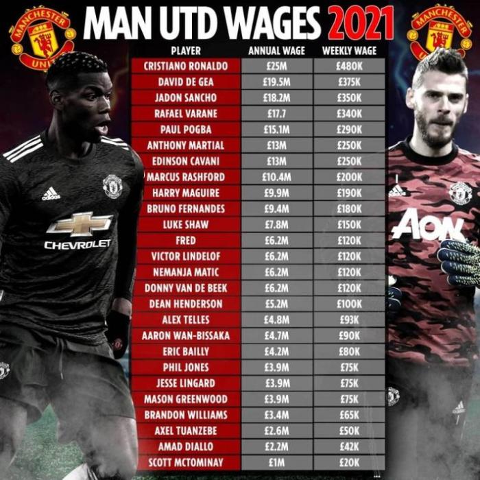 来源:直播车11-18 15:38直播车11月18日讯 《太阳报》今日盘点了曼联队内周薪排行榜,其中C罗薪水最高,曼联队内有多达四名球员周薪超过30万英镑。