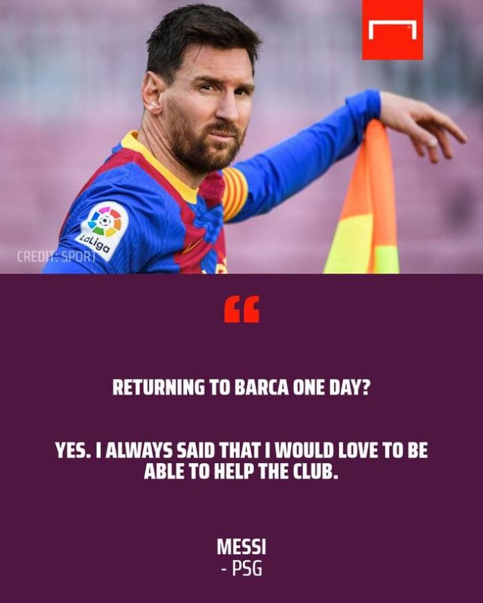 梅西今夏不情愿地离开了巴萨,现在他在巴黎圣日耳曼效力。被问到自己未来会不会回老东家时,梅西说道:“是的,我一直都说我愿意做点事情来帮助俱乐部。”