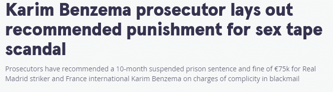 检察官建议本泽马入狱10个月,缓期执行