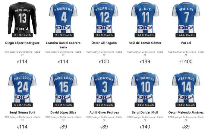 西班牙人球衣拍卖:武磊1400欧暂居首
