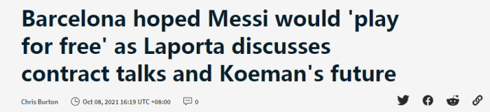 直播车讯 10月8日消息,巴塞罗那主席拉波尔塔表示,他们曾希望梅西免费为巴萨踢球。