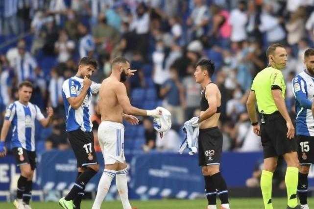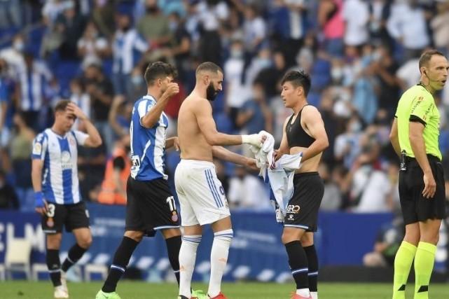 有排面!武磊与本泽马交换球衣!踢皇马5次传球全部成功,制造1次威胁