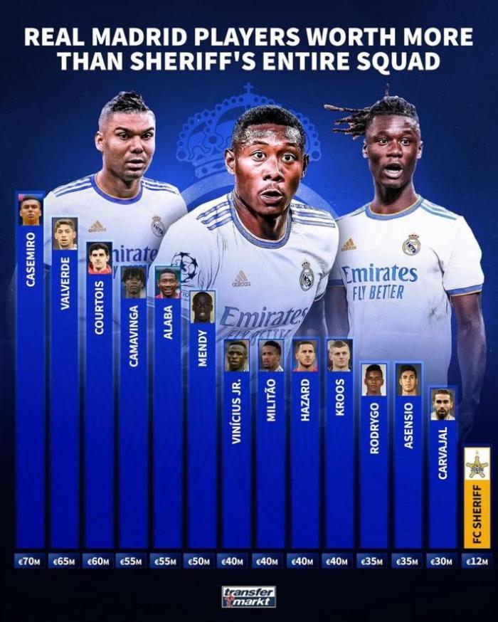 德转:皇马有13人超过谢里夫全队身价
