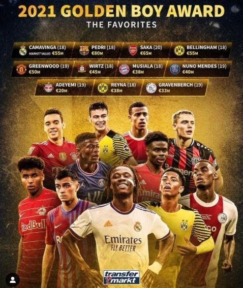 直播车9月18日讯 此前,金童奖主办方《都灵体育报》更新了金童奖40人名单,