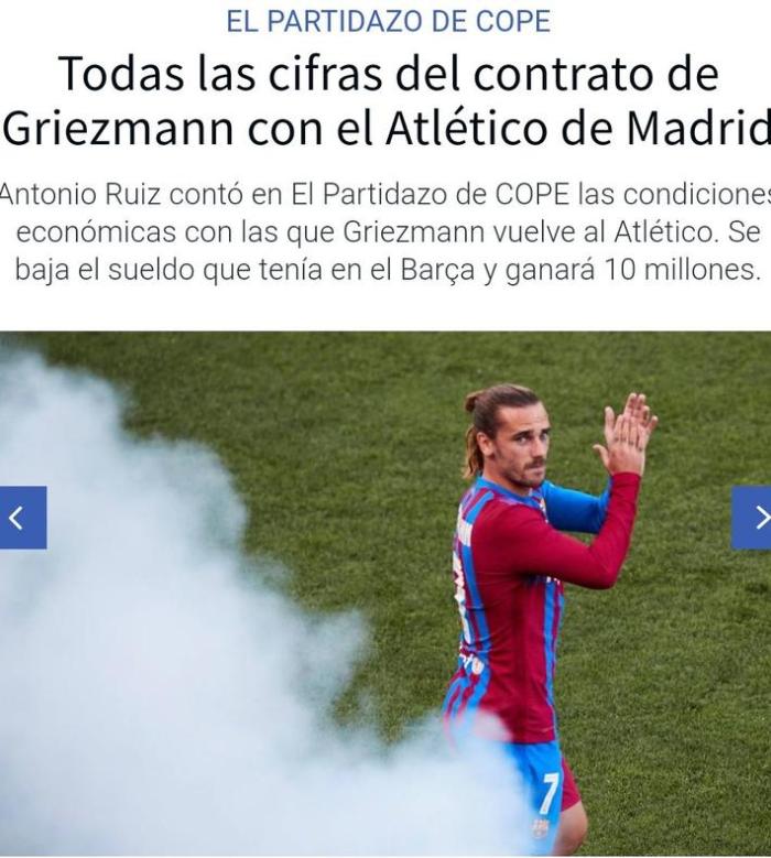直播车9月02日讯 ,据《科贝电台》报道,格列兹曼本次回归马竞降薪到1000万欧,另外马竞方面也支付了1000万欧元的租借费。