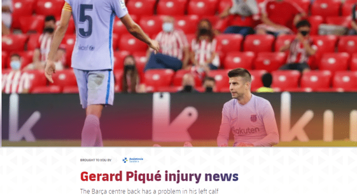 在对毕尔巴鄂的联赛中,皮克因伤提前退场。赛后