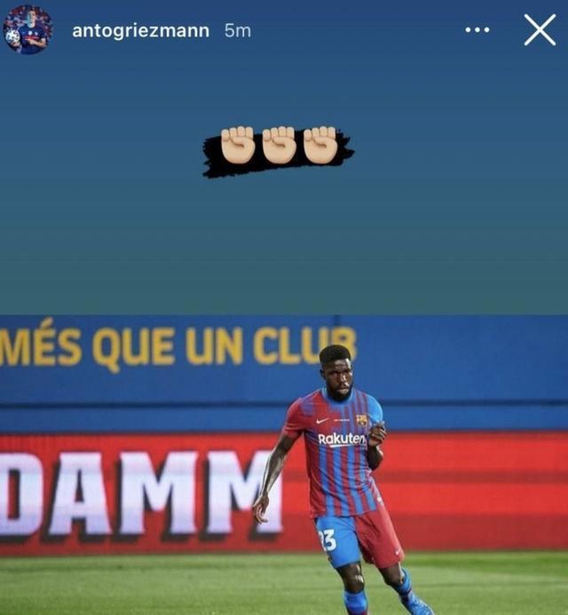 而他的同胞格列兹曼则晒出一张乌姆蒂蒂的照片,并配上三个拳头的表情,对他表示支持。