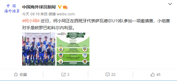 北京时间8月8日,来自知名博主“中国球员海外新闻”的报道,泰山队17岁的新星何小珂也进入了西班牙,他目前已经随西班牙球队萨尔德尔的U19参加一项邀请赛,并且进入了首发阵容,同组的参赛队伍分别是欧罗巴和科尔内利亚,他将在这项赛事中得到历练,而且以跳级球员的身份参赛,潜力得到了广泛认可。萨瓦德尔上赛季在西乙联赛,但是排名倒数第4名,直接降级。