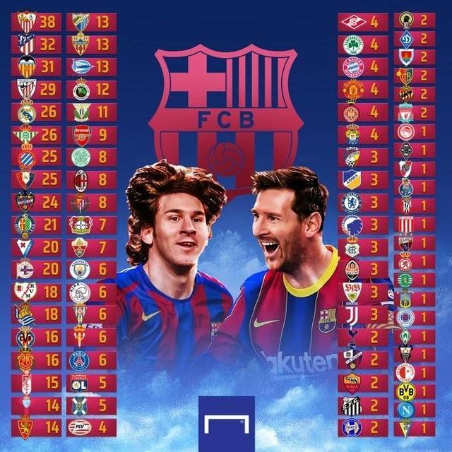 英超6强都被梅西攻破过大门,阿森纳9个排第一,曼城6个排第二,曼联4个排第三。巴黎、拜仁和尤文图斯等各自联赛的班霸都被梅西攻破过球门。不过梅西至今没有攻破过国米大门。