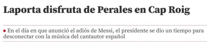 《世体》表示,拉波尔塔和巴萨高层参加音乐节的主要目的是为了放松,这个音乐节正好在加泰罗尼亚举办,是一个歌手的互动。