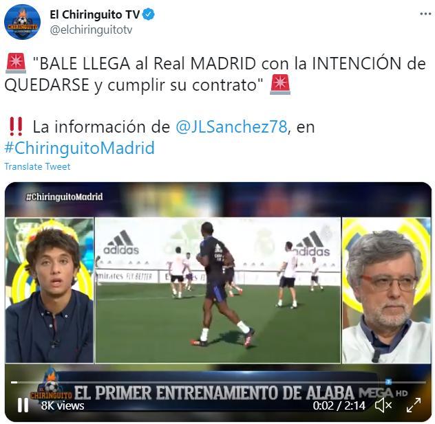 这位记者表示,贝尔现在已经回到皇马训练基地进行季前赛备战工作,目前他的合同将在2022年到期,这名球员计划与皇马履行完合同。