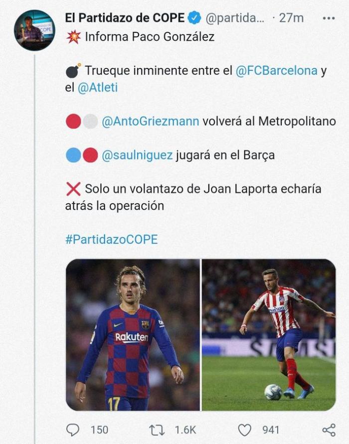 直播车7月15日讯 ,据科贝电台消息,马竞就格子和萨乌尔互换一事达成协议。